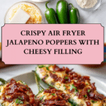 Crispy and cheesy jalapeno poppers made easily in the air fryer, perfect as a quick appetizer or snack that combines the heat of jalapenos with creamy cheddar and cream cheese for a delightful bite.
