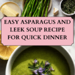 This asparagus and leek soup is a light yet comforting dish made with tender spring vegetables blended into a silky, savory soup. Enhanced with grated Parmesan cheese for depth and richness, it offers an elegant yet simple meal perfect for entertaining or quiet weeknights.