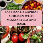 This Caprese Chicken recipe offers a juicy, baked chicken breast topped with fresh tomato slices, creamy mozzarella, aromatic basil, and a tangy balsamic glaze. It’s a simple yet elegant dish that brings the fresh flavors of a classic Caprese salad into a hearty main course, perfect for a quick weeknight dinner or a special occasion.