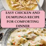 A classic American comfort dish featuring tender, shredded chicken simmered in a rich, savory broth with soft, fluffy homemade dumplings. This warm and hearty chicken and dumplings recipe is perfect for cozy family meals.
