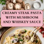 Tender steak strips tossed with pasta in a luxurious mushroom and whiskey cream sauce—rich, savory, and restaurant-worthy.