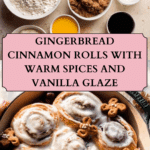 Soft and fluffy cinnamon rolls infused with warm gingerbread spices, filled with a sweet brown sugar and cinnamon mixture, and topped with a smooth vanilla glaze. Perfect for holiday breakfasts and brunches, these rolls combine traditional cinnamon roll comfort with festive gingerbread flavors.