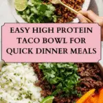 This High Protein Taco Bowl is a flavorful and nutritious meal that combines lean protein, fiber-rich ingredients, and fresh toppings for a satisfying bowl-style dinner or lunch. It’s perfect for meal prep or a quick weeknight dish, featuring seasoned ground beef or turkey served over your choice of rice or cauliflower rice and topped with classic taco accompaniments.