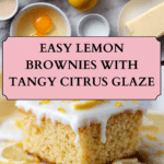 - Glaze and cool: Pour the lemon glaze evenly over the warm brownies, spreading it to the edges. Allow the brownies to cool completely in the pan before slicing into squares.