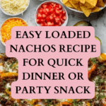 Pair your loaded nachos with simple sides like a crisp green salad or Mexican street corn salad to add extra veggies and lighten up the meal. A chilled beverage, whether it’s a margarita or iced tea, perfectly complements these robust flavors.