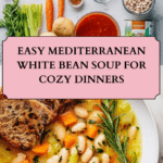 This Mediterranean White Bean Soup is a hearty and healthy blend of tender white beans, fresh vegetables, and fragrant herbs. It offers a comforting, flavorful dish inspired by traditional Mediterranean cuisine, perfect for a nutritious and filling meal.