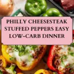 Delicious bell peppers stuffed with seasoned sautéed beef, onions, and melted provolone cheese, inspired by the classic Philly cheesesteak sandwich. This low-carb, gluten-free main course is perfect for a flavorful and satisfying meal.
