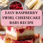 These raspberry swirl cheesecake bars are rich, creamy, and perfectly sweet with a bright raspberry ripple throughout. Made in a simple bar form, they’re easier than traditional cheesecake and perfect for parties, holidays, or make-ahead desserts.