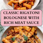 A hearty and authentic Italian pasta dish featuring rigatoni tossed in a slow-simmered, rich meat sauce made from ground beef, optional Italian sausage, aromatic vegetables, and a touch of milk for creaminess, perfect for a comforting dinner.