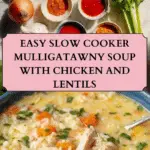 A rich and comforting Anglo-Indian slow-cooker mulligatawny soup made with warming spices, tender chicken, vegetables, red lentils, and a creamy touch of coconut milk, perfect for a hearty and flavorful meal.