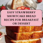 Strawberry Shortcake Sweetheart Bread is a soft, tender loaf inspired by classic strawberry shortcake. Made with fresh strawberries, vanilla flavor, and topped with a sweet glaze, this pretty pink-flecked bread is perfect for Valentine’s Day, brunch, or gifting.