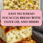 This Super Easy No-Knead Focaccia is a soft and fluffy Italian bread infused with rich olive oil flavor. Perfect for beginners, it requires no kneading or special tools. The dough is simply mixed, left to rise, then baked to a golden perfection with a dimpled top and sprinkled with herbs and flaky sea salt.